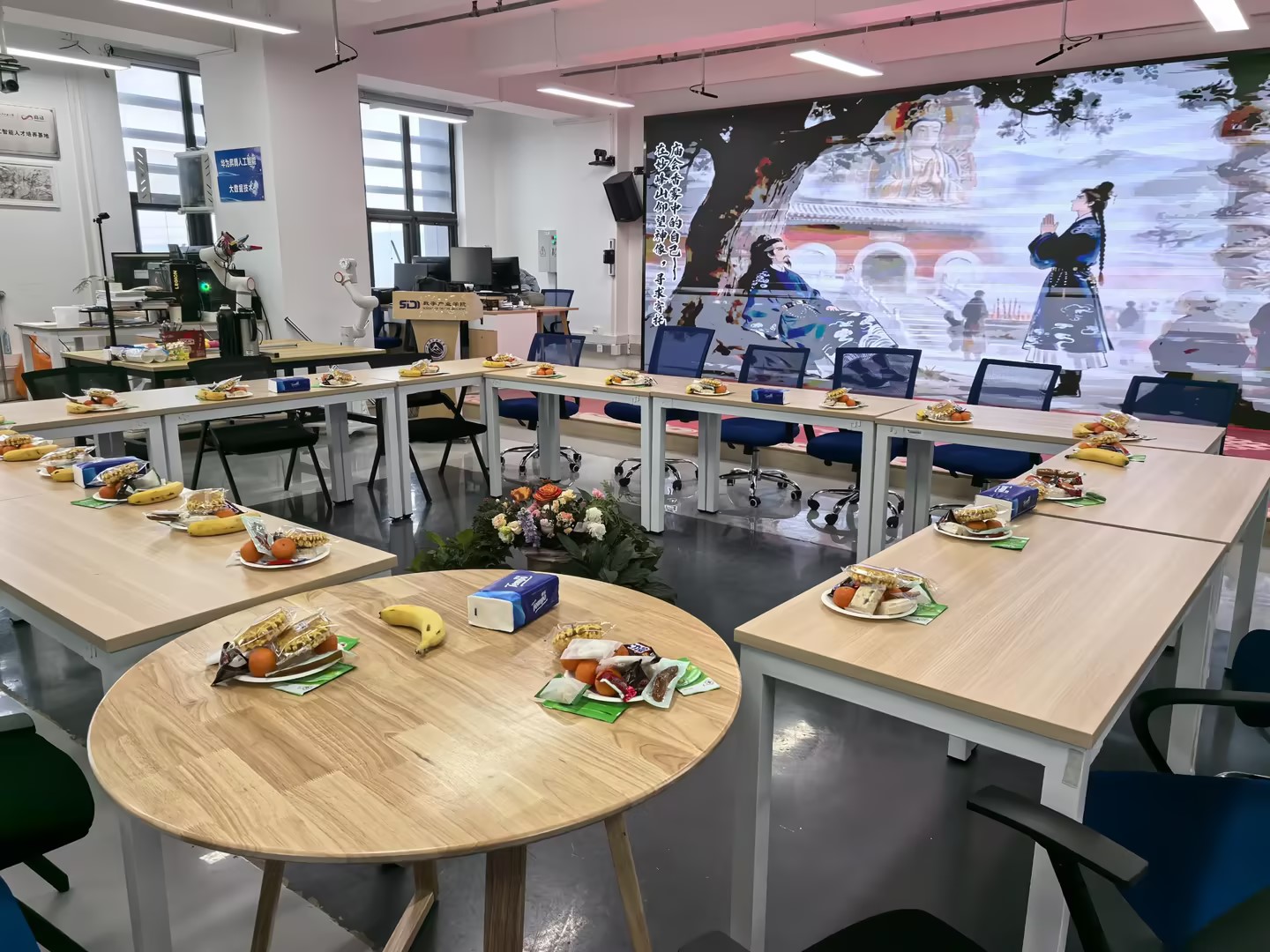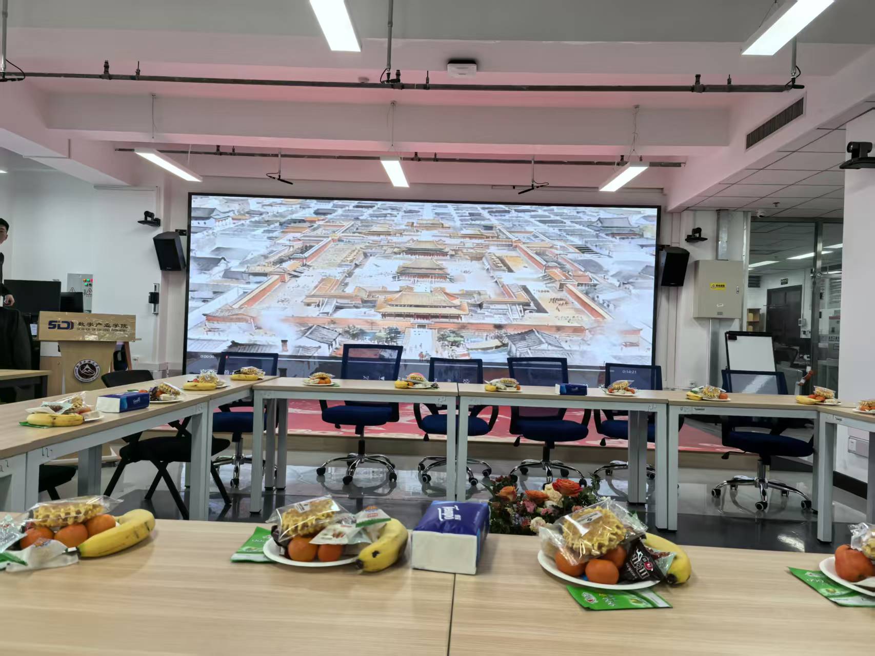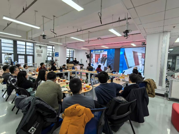 在成果分享环节,各项目团队轮番上阵,亮出年度“精彩”。罗钏雯老师团队依托 AI 技术精心打造的京西文旅动画视频,以细腻的画面和鲜活的创意,为在场人员带来了一场沉浸式的视觉盛宴;白玉星老师团队通过生动的视频短片,全方位展示了《智能建造》系列课程的教学内容与学生的优秀实践成果,尽显课程建设的扎实成效;李源老师团队带来的无人机协同坦克作战科创项目,凭借前沿的技术构思和亮眼的应用效果,引发了在场教师的热烈讨论。